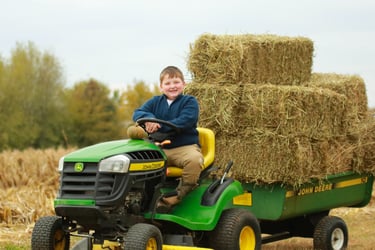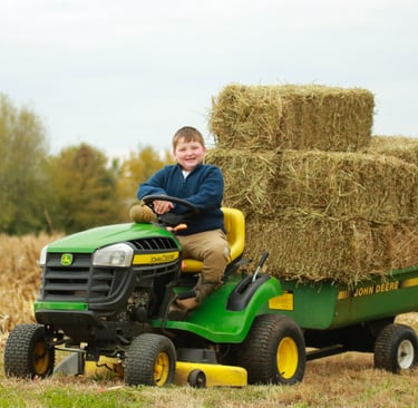Pictured right: Our son, Boyd, who would rather drive the tractor than play with horses (if you know, you know).