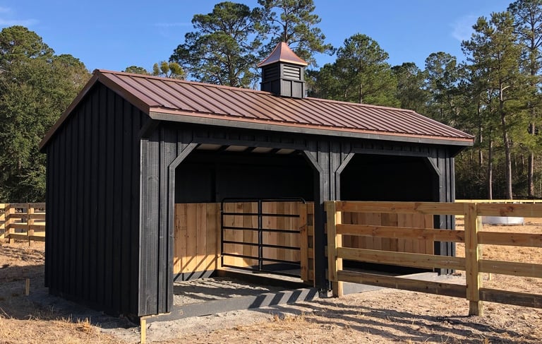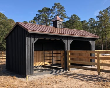Keeping your equine partners out of the elements (although we all know they'll choose a nice Spring rain over a dry shelter) is important. If hail or other uncomfortable weather comes without warning, your horse deserves somewhere to relax. Redmon Fence offers custom on-site built shelters for your peace of mind and your horse's ultimate comfort.