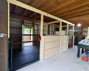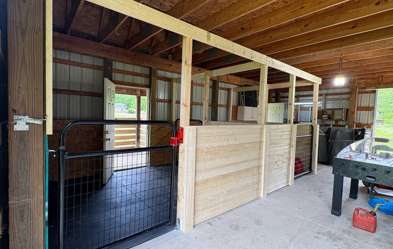 We offer custom build-outs of your barn including stalls, custom lean-to's and run-ins, hay storage, and more.